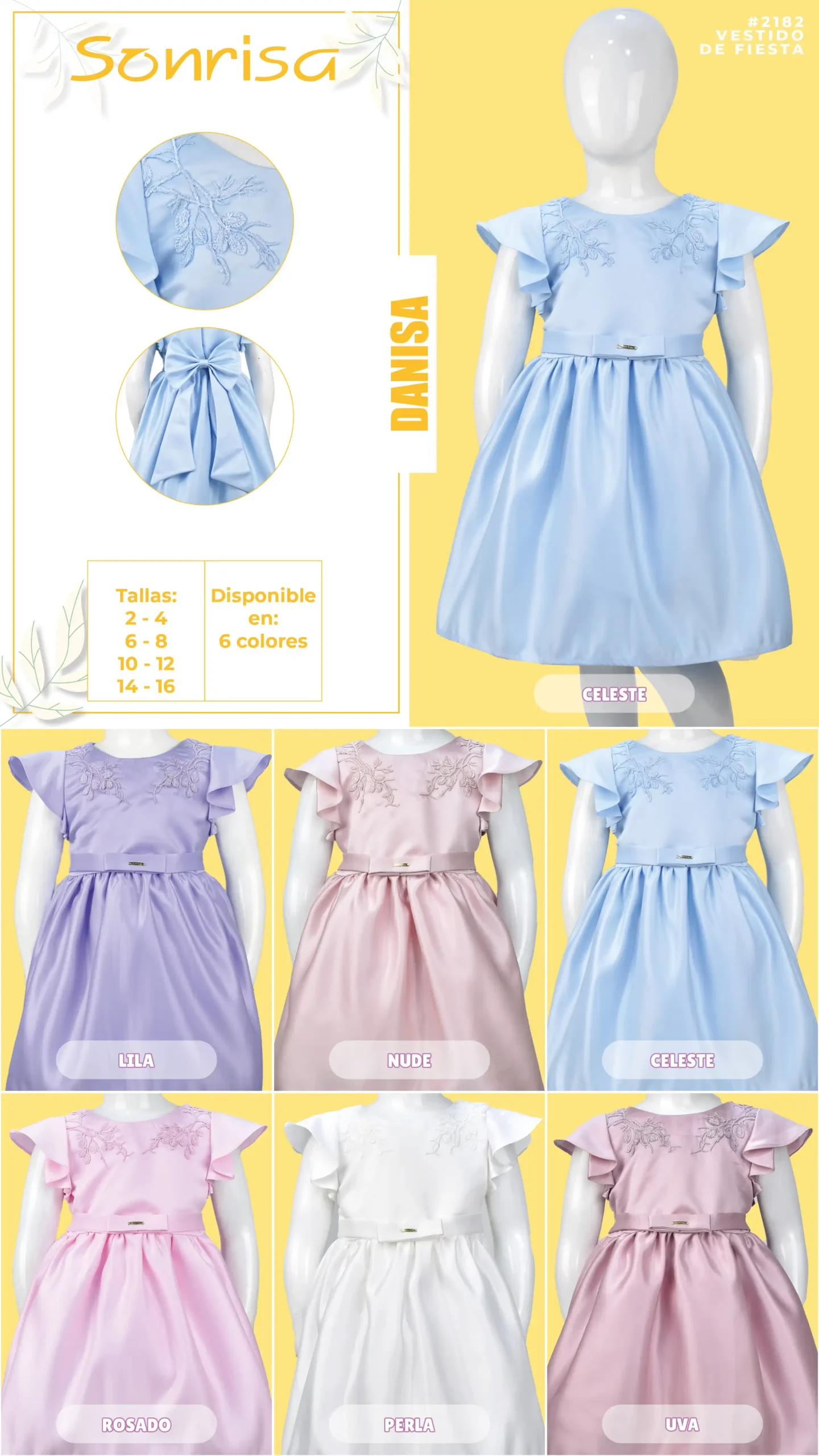 | Tallas 2 a 16 | 2, 4, 6, 8, 10, 12, 14, 16  |